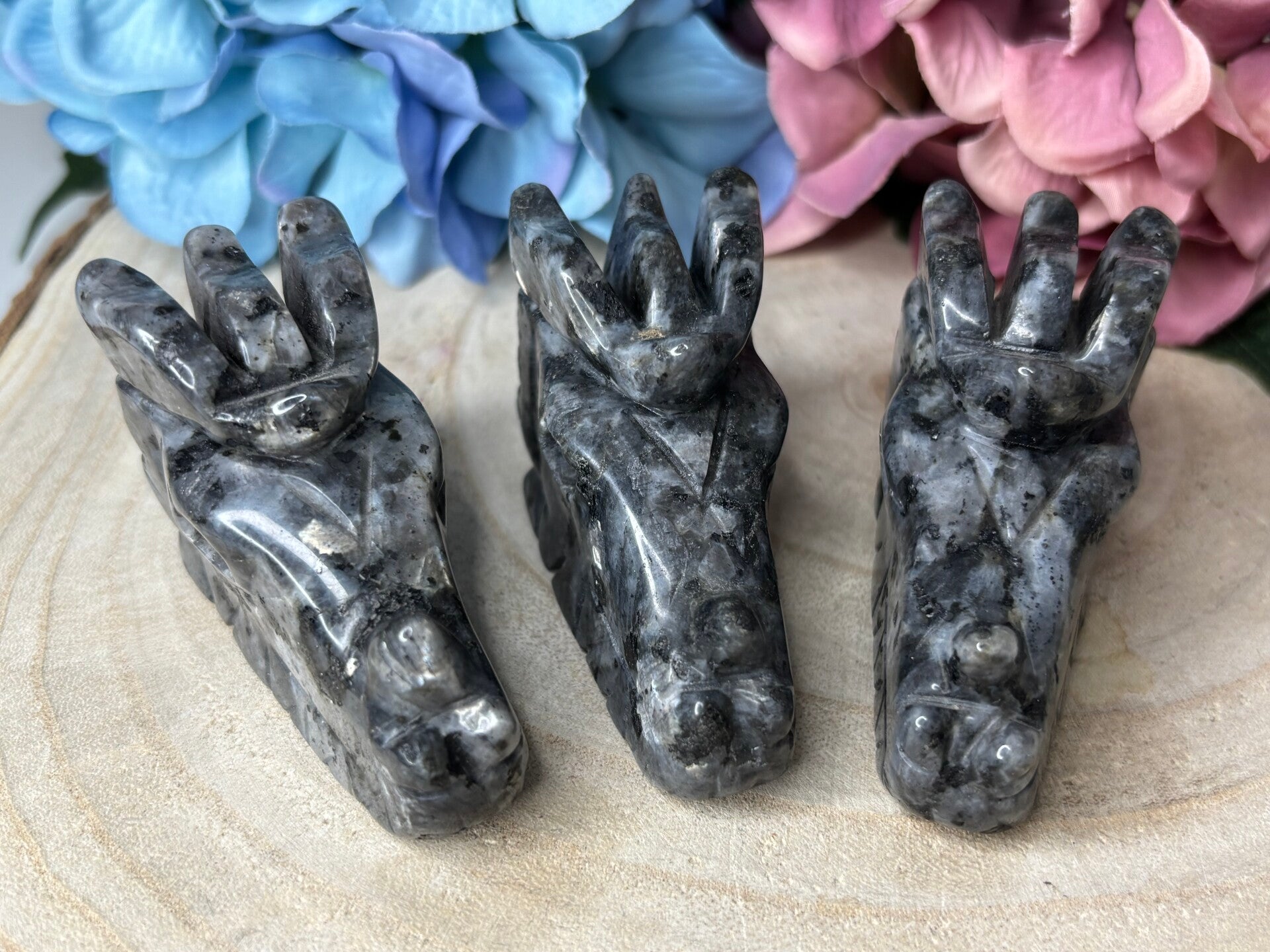 Larvikiet werkt beschermend, reinigend en aardend omdat het een sterke connectie met de aarde maakt. Het beschermt tegen negatieve energie en voert het af de aarde in en reinigt hierdoor het energielichaam. De steen kalmeert, maakt geduldig en werkt inzichtgevend en helpt om weloverwogen, rationele beslissingen te nemen. Het stimuleert intelligentie, geheugen en informatieverwerking en is hierdoor zeer geschikt voor studie en leerstoornissen. Zowel de opname als integratie en toepassing van informatie wordt bevorderd. De steen stimuleert ook spirituele inzichten en vaardigheden en helpt een connectie maken met vorige levens en natuurgeesten.